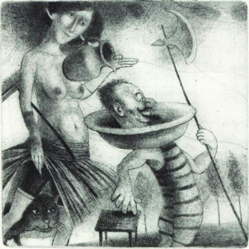 Postacie te bywają odrażające, wynaturzone, a niekiedy rubaszne. Zdarza się też, iż przypominają swym wyglądem bohaterów „Gargantui i Pantagruela”. Wspinają się po przedziwnych konstrukcjach, zaludniają zakamarki i podwórka bądź zmagają się, toczą walkę z niezwykłymi stworami. Niekiedy też próbują uchwycić absolut czy choćby anioła. Bohaterowie grafik Karola Augustynowicza to z pozoru postacie z dawnych epok lub innych światów. Jeżeli jednak przyjrzymy się im dokładniej, to odnajdziemy w ich rysach, sylwetkach oraz sytuacjach, w jakich zostały przedstawione echa scen i zdarzeń, które można zaobserwować wędrując po podwórkach starych kamienic zlokalizowanych choćby poza ścisłym centrum Wrocławia. Młody artysta „chwyta” bowiem na gorąco zaobserwowane tam typy i zdarzenia, a następnie – uruchamiając swą niezwykłą i przebogatą wyobraźnię – próbuje je zderzać z mitami i archetypami obecnymi od wieków w kulturze europejskiej. To zaś owocuje tym, że jego graficzne kompozycje są zarazem dalekie, jak i bliskie doświadczeniom oraz wrażliwości współczesnego odbiorcy. Karol Augustynowicz uzyskał w ubiegłym roku dyplom absolwenta grafiki w pracowni prof. Andrzeja Basaja na wrocławskiej Akademii Sztuk Pięknych. Artysta wykonuje grafiki w technice suchej igły. Inspiracje do swych prac czerpie z literatury rosyjskiej (Dostojewski, Gogol, Czechow) i barokowej oraz z motywów biblijnych i mitologicznych. Bliska jest mu twórczość malarzy niderlandzkich – m.in. Petera Bruegela i Hieronima Boscha Wernisaż w Dolnośląskim Centrum Informacji Kulturalnej – Galerii Młodych Ośrodka Kultury i Sztuki we Wrocławiu 2 kwietnia o godz 18.00 Ewa Han