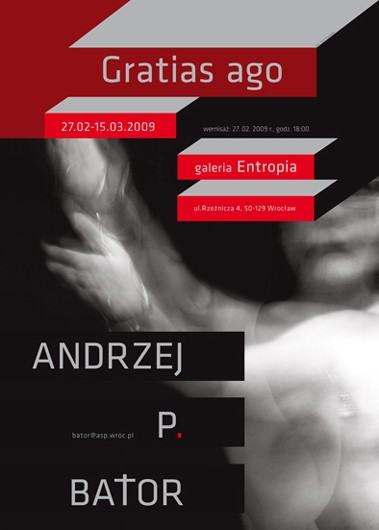 Oto świeżutki plakat autorstwa Artura Skowrońskiego zapraszający na wystawę: GRATIAS AGO – Andrzej P. Bator. Wernisaż wystawy odbędzie się w najbliższy piątek 27 lutego o godzinie 18 w galerii Entropia.