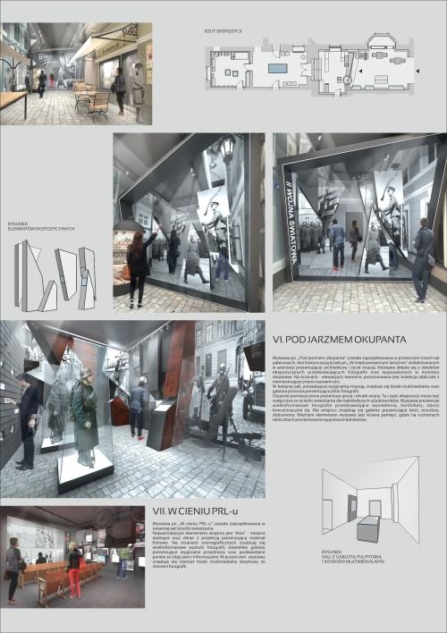 Zakres opracowania konkursowego obejmował: rozwiązania przestrzeni wystawy stałej o powierzchni 481,5m2, projekt sali wystaw czasowych, sali edukacyjnej, holu wejściowego oraz korytarzy. Koncepcja ekspozycji została opracowana na podstawie scenariusza udostępnionego przez organizatorów.