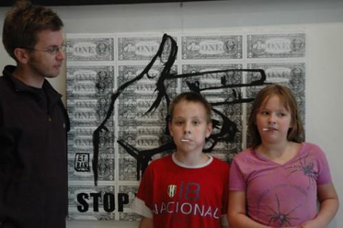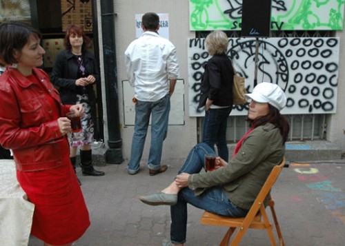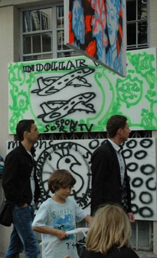 Co się działo w niedzielę na Mironaliach w Warszawie - reprezentacja Wrocławia STARY BANAN wystąpił z najnowszymi pracami mimo kaca była kasa ! opis akcji " będzie kasa " plus 15 minut sławy : naród ma możliwość zdobycia eksponatów związanych z historią STAREGO BANANA: eksponaty - świadkowie historii STAREGO BANANA do wygrania o 18.15 to miedzy innymi : - krwawica STAREGO BANANA - rzęsy, trzepiąc którymi STARY BANAN załatwił sobie wystawę w Zachęcie - kostka, którą rzucamy, kto jest STARY a kto BANAN - puszka Pandory .wieczko STAREGO BANANA - jedyny domyty pędzel STAREGO BANANA - aparat foto, którym sfałszowałyśmy historię STAREGO BANANA - lakier, którym zamalowujemy brązowe plamy na STARYM BANANIE - tusz, którym pisałyśmy antystatus STAREGO BANANA - jajco STAREGO BANANA plus oko gratis Małgorzata ET BER Warlikowska : Seria obrazów o pieniądzach na pieniądzach. Rozgrzebałam ten problem. Dużo szukać nie musiałam - rozważam tą sytuację, co zajrzę do mojego portfelika w kropeczki: jedno euro, 100 forintów, osiem i pół złotego i jen, (ale to chyba kopia) - na szczęście. Obraz LUCKY POO - wdepniesz w psią kupę: na szczęście, narobi na ciebie ptak (rok temu w Pradze narobił na mnie chyba orzeł, wydalina wielkości krowiego placka w sam czubek głowy): na szczęście. rozczuliło mnie jak w końcu zobaczyłam zdjęcia z Japonii i widzę Budynek ASAHI z wielkim złotym gówienkiem (gówniszczem?!), podświetlonym na dachu . ten obraz to kwintesencja wszystkich mych przygód z kupą. jeśli wdeptywałam wdeptuję i wdepnę nie raz, jeśli spadało spada i spadnie po wielokroć to niech mi się chociaż miło kojarzy. XY przedstawia cykl znikających banknotów: "100%" samochód do jeżdżenia, obrazek do patrzenia ! dla 3 latka pieniądze to grafika - esy floresy papierki na cukierki "100%" - obrazy są namalowane taką farbą, która zniknie - nie będą wiec inwestycją złotową, ale inwestycją w siebie - tak jak wyjazd na wakacje jest inwestycją w siebie - przeżycia zostają w nas na zawsze - tak obraz - jest ulotną wartością, - która jest dostępna tylko tu i teraz w 100% IA 2009 Warszawa 21 czerwca 2009 od rana do nocy Anka i Berecik XY xy@artxy.eu www.artxy.eu 502- 333- 809 pracownia na adresie cybulskiego 35 parter 50 - 205 wrocław Foto jak złoto.