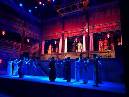 Na dworcu w Zhengzhou wysiedliśmy z superszybkiego pociągu, a na peronie oczekiwała na nas ekipa filmowa, która towarzyszyła nam już do końca naszego pobytu w prowincji Shanxi. Jincheng przywitał nas deszczem i rozmazanym krajobrazem za oknami pociągu, jednak już następnego dnia nieprzyjazna aura uległa zmianie… Chociaż warunki atmosferyczne wymagały zaopatrzenia w płaszcze deszczowe i kalosze, to były one niezbędne jedynie w drodze z hotelu do autobusu, i z autobusu do teatrów, a tych w krótkim czasie odwiedziliśmy wiele. To, co w naszych „rodzimych" realiach mogłoby zostać okrzyknięte mianem superprodukcji dla chińskiego widza stanowi pewien standard, na który „po godzinach" można wybrać się, by spędzić kilka chwil ze znajomymi. Nierzadko „na potrzeby" określonego spektaklu wznosi się odpowiedni obiekt, tak, aby zapewnić optymalne warunki realizacji koncepcji artystycznej.