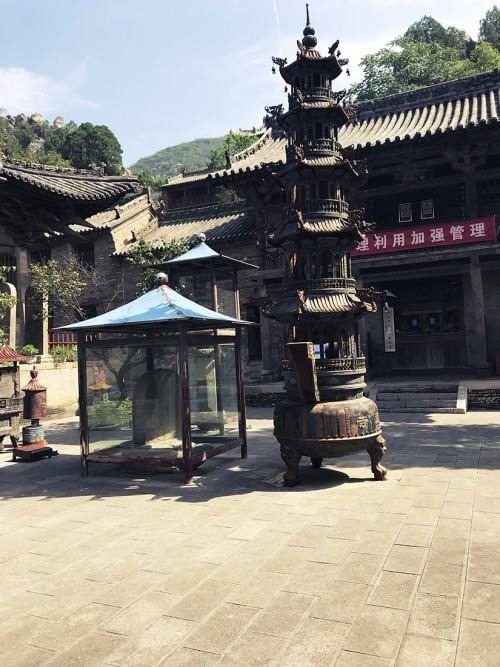 Palące słońce i kilka cirrusów na niebie przywitało nas, gdy wysiadaliśmy z autokaru nieopodal świątyni Qinglian. Na miejscu butelkowa budowla – z wejściem na wysokości kilku metrów i zespół świątynny sprawiający wrażenie zapomnianego. Polichromie na drewnie, których nie zatarł czas przywołują myśli o rozmachu i bogactwie wizji. Jakość wykonania skomplikowanych modułów potwierdza finezję chińskich rzemieślników. Zza murów piękny widok na góry „ozdobione" tu i ówdzie świątyniami. Palące słońce, cykady, zapach kadzideł i krab na talerzu, który czekał na nas, gdy weszliśmy do górskiej restauracji.