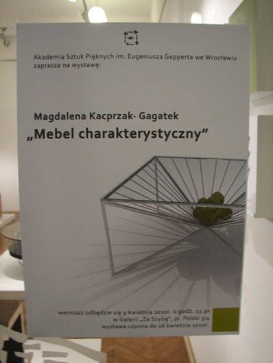 Ścieżka nawigacyjna ASP Aktualności Jeszcze tylko do piątku ! Ogłoszenie Opublikowano 15 kwi 2010 " Mebel charakterystyczny " dla Małgorzaty Kacprzak- Gagatek w Galerii " Za Szybą", pl. Polski 3/4.Wystawę będzie można ogladać do 16 kwietnia. Zdjęcia : Piotr Osowicz Pozostałe aktualności Fotorelacja Connect – Campus Summer School – szkoła wymiany W dniach 23-29 października, w Sokołowsku, odbył się artystyczny kurs zawodowy zorganizowany przez Fundację Sztuki Współczesnej In Situ. 31 paź 2025 Czytaj więcej o Connect – Campus Summer School – szkoła wymiany Fotorelacja Otwarcie wystawy Słowa, które nie padły Zapraszamy na fotorelacje z wystawy Soni Ruciak, którą oglądać można do 5 grudnia w Galerii Rektorat im. Zenona Polusa. 31 paź 2025 Czytaj więcej o Otwarcie wystawy Słowa, które nie padły Fotorelacja Industrial glass Zapraszamy do obejrzenia fotorelacji z wystawy. 31 paź 2025 Czytaj więcej o Industrial glass Fotorelacja ArtTechScience - Interdyscyplinarne Forum Uczelni Wrocławia 28 października 2025 roku we Wrocławiu odbyła się pierwsza edycja konferencji. 31 paź 2025 Czytaj więcej o ArtTechScience - Interdyscyplinarne Forum Uczelni Wrocławia