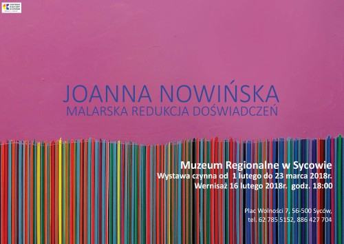 Wernisaż wystawy Malarska Redukcja Doświadczeń odbędzie się w dniu 16 lutego o godzinie 18:00 w siedzibie Muzeum Regionalnego w Sycowie przy placu Wolności 7. Wystawa potrwa do 23 marca.
