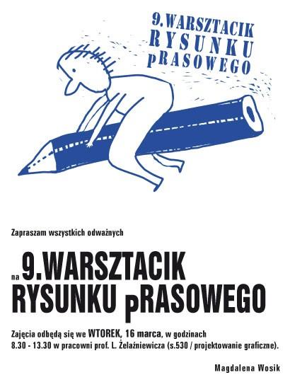 Ścieżka nawigacyjna ASP Aktualności Kolejna odsłona Warsztaciku Rysunku pRASOWEGO Ogłoszenie Opublikowano 14 mar 2010 Wtorek 16 marca od 8.30 do 13.30 w pracowni prof.L.Żelaźniewicza ( s.530 /projektowanie graficzne)Zaprasza Magda Wosik Pozostałe aktualności Fotorelacja Connect – Campus Summer School – szkoła wymiany W dniach 23-29 października, w Sokołowsku, odbył się artystyczny kurs zawodowy zorganizowany przez Fundację Sztuki Współczesnej In Situ. 31 paź 2025 Czytaj więcej o Connect – Campus Summer School – szkoła wymiany Fotorelacja Otwarcie wystawy Słowa, które nie padły Zapraszamy na fotorelacje z wystawy Soni Ruciak, którą oglądać można do 5 grudnia w Galerii Rektorat im. Zenona Polusa. 31 paź 2025 Czytaj więcej o Otwarcie wystawy Słowa, które nie padły Fotorelacja Industrial glass Zapraszamy do obejrzenia fotorelacji z wystawy. 31 paź 2025 Czytaj więcej o Industrial glass Fotorelacja ArtTechScience - Interdyscyplinarne Forum Uczelni Wrocławia 28 października 2025 roku we Wrocławiu odbyła się pierwsza edycja konferencji. 31 paź 2025 Czytaj więcej o ArtTechScience - Interdyscyplinarne Forum Uczelni Wrocławia