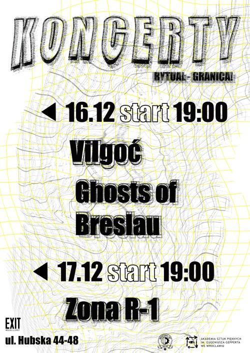 Wraz z Wroclaw Industrial Festival zapraszamy 16 grudnia na koncerty: Vilgoć, Ghosts Of Breslau oraz Zona R-1 towarzyszące wydarzeniu RYTUAŁ - GRANICA!