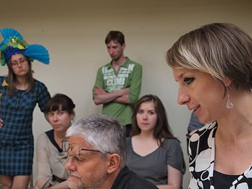 prezentującej plakaty na Święto Wrocławia 2011. Miejsce: pierzeja
