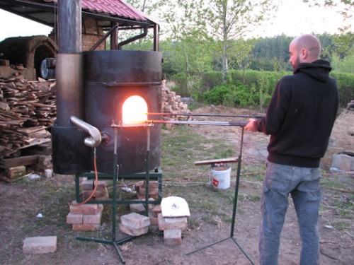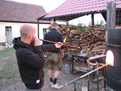 Ceramicy w sobotę punktualnie o 12.00 wyładowali z pieca ,swoje prace ,zapakowali i świętowali. Szklarze do późnych godzin nocnych " dmuchali" i tak to było.....