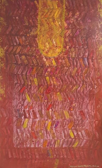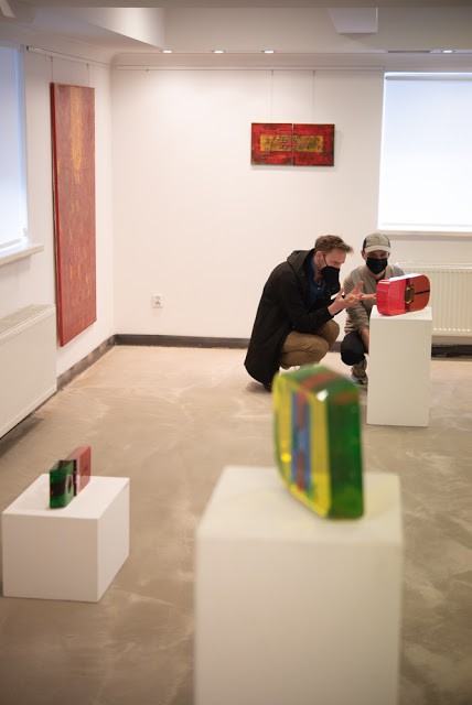 Moja wystawa jest prezentacją moich dokonań z ostatniego czasu, który obejmuje (co chyba nikogo nie dziwi) okres pandemii. Czas ten ponury i przygnębiający starałam się wypełnić wielobarwnymi bytami o wydźwięku optymistycznym. Zarówno moje szkła, jak i malarstwo, prezentują moje doświadczanie koloru i jego działania na mnie, i oczywiście na odbiorcę. Prezentowane abstrakty odnoszą się do rzeczywistości, stanowią swoisty pamiętnik - zapis symbolicznie ujętych emocji, przeżyć… refleksji wzbogaconych o połyskliwe refleksy na powierzchni szkła.