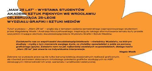 Co czuję, kiedy myślę: mam 25 lat... ? Co to dla mnie oznacza? Graficzne odpowiedzi składają się na kameralną wystawę na II piętrze DCF przy sali Lalka (ul. Piłsudskiego 64a, Wrocław).