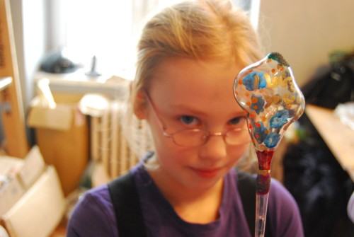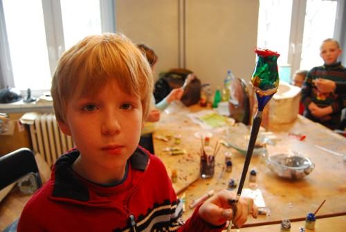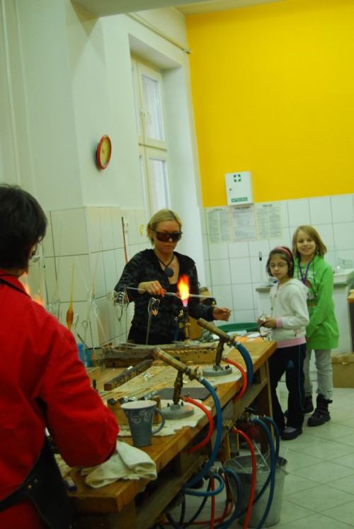 To dzieci ze S.P. nr 1, zaproszone na warsztaty szklarskie, miały okazję zobaczyć jak w Pracowni Palników powstają szklane bańki , a następnie włanoręcznie je ozdobić.