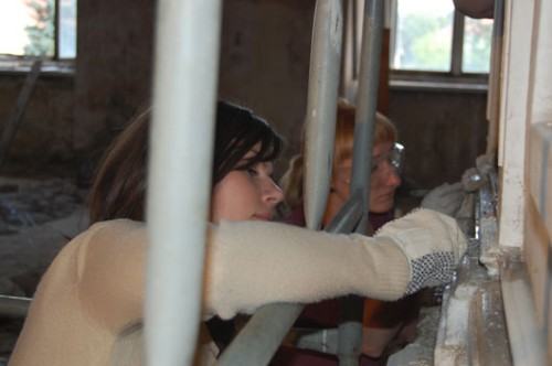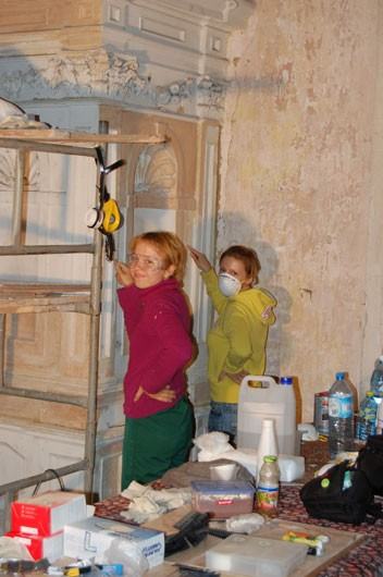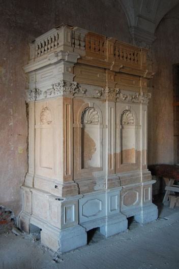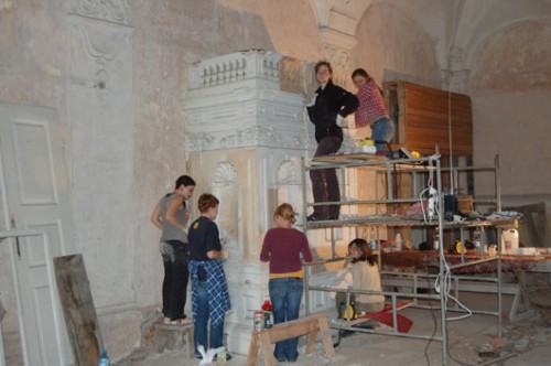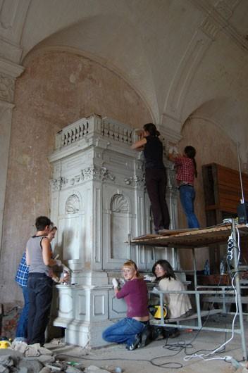 Obiekt przy którym pracowaliśmy to piec ceramiczny , który stoi w sali balowej, w barokowym skrzydle Zamku Międzyleskiego. Opracowano dokumentację fotograficzną, zwymiarowano piec i przystąpiono do wstępnego oczyszczania pieca z nawarstwień farb olejnych. W przyszłym sezonie zostaną dokończone prace oczyszczeniowe i przystąpimy do uzupełniania ubytków. Pogoda nam dopisała aż żal było wracać... Piotr Romiński