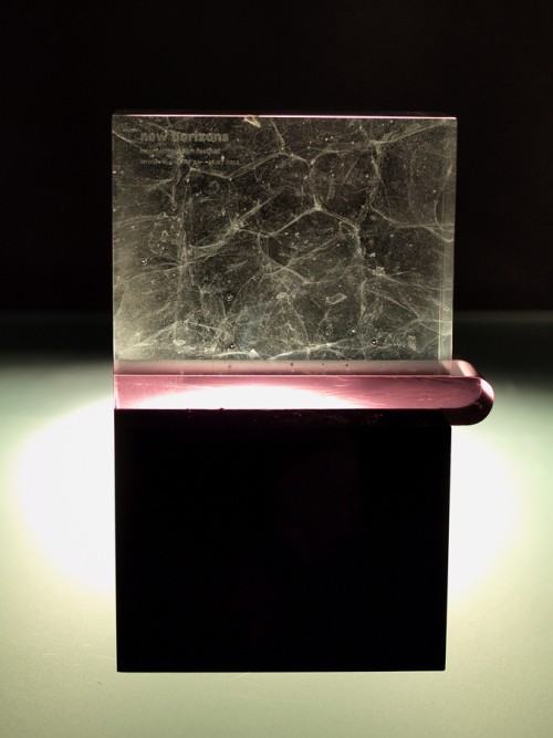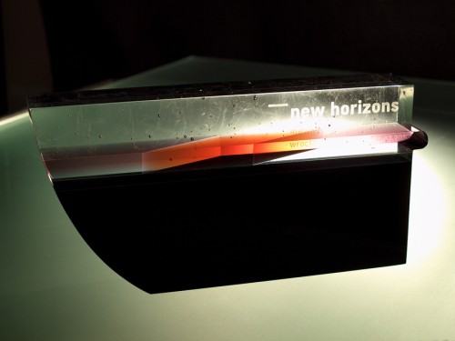 I z pewnością dlatego jego kroki skierowały się do Katedry Szkła, która od tamtego momentu zapewnia temu zacnemu festiwalowi nagrody w postaci szklanych obiektów o charakterze małej formy rzeźbiarskiej. Z początku były to wybrane prace studentów , a od tego roku, kiedy festiwal przemianował się na Nowe Horyzonty i zadbał o nową szatę plastyczną, są to nawiązujące do niej swym wyrazem obiekty szklane, które specjalnie na tę okoliczność zostały wykreowane- zaprojektowane i własnoręcznie wykonane- przez dwie artystki, współpracujące ze sobą we wrocławskiej Katedrze Szkła- prof. Małgorzatę Dajewską i asystent Marzenę Krzemińską .