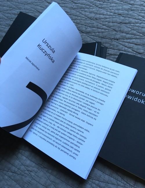 Autorzy wybranych przez uznanych literatów i poetów opowiadań zobaczyli swoje dzieła zamknięte w formie wydawnictwa zaprojektowanego przez Angelikę Błasiak – studentkę Niestacjonarnych studiów na kierunku Grafika. Podczas spotkania miała miejsce prezentacja pięciu projektów spośród których wyłoniony został ten ostatecznie wydany. Obejrzeliśmy fotografie i filmy przedstawiające prototypy książek. Wszystkie projekty powstały w ramach zadania semestralnego w semestrze zimowym w Pracowni Książki. Autorki to Magdalena Banaś, Angelika Błasiak, Martyna Byczyńska, Olivia Jane Ennis i Inna Vlasova.