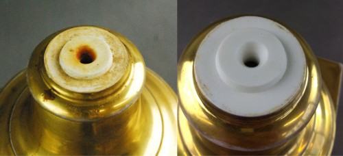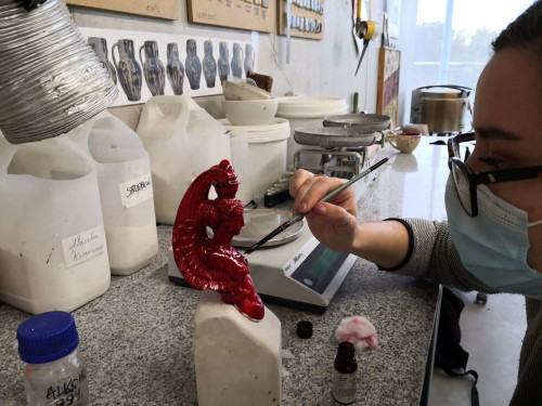 W ramach dyplomu wykonano także kopię brakującego uchwytu z porcelany plastycznej. Kopia została poszkliwiona i pozłocona, a następnie zamontowana do oryginalnego obiektu.