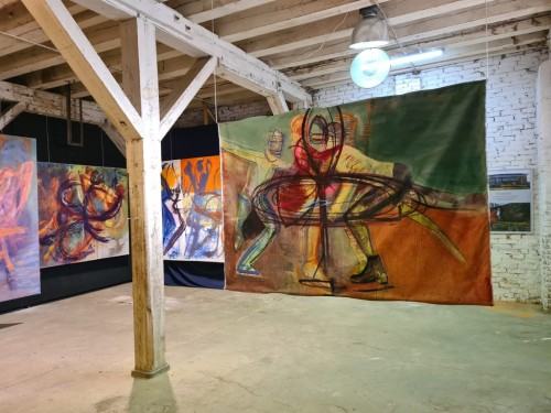 Na wielkoformatowych realizacjach wyraża emocje i nastroje w malarskim geście, w materii, w kolorze. Obrazy zostały namalowane w technice tempery żółtkowej olejno-żywicznej na płótnie.