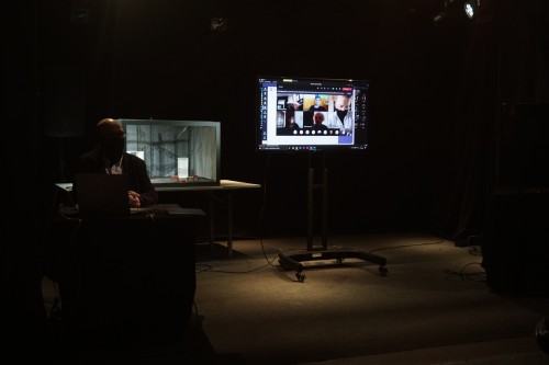 Drugą obronę poprowadził Jan Głąb z "Projektem i realizacją scenografii do spektaklu ,,Udając ofiarę'' Olega i Vladymira Presniakow w reżyserii Krzysztofa Dracza w Akademii Sztuk Teatralnych im. Stanisława Wyspiańskiego w Krakowie - Filii we Wrocławiu." Tutaj również prezentowane były plansze z projektami scenografii, kostiumów oraz makieta. W związku z warunkami pandemicznymi zaproszeni goście mogli uczestniczyć w obronie online, wśród zaproszonych byli m.in. JM Rektor prof. Wojciech Pukocz, Prorektor ds. dydaktycznych i studenckich, Dziekan wydziału AW, WiS dr hab. Agata Danielak-Kujda.