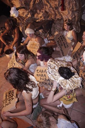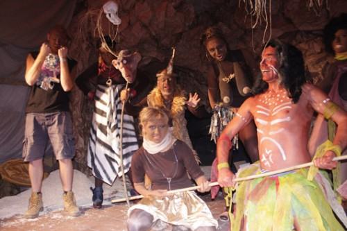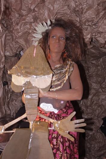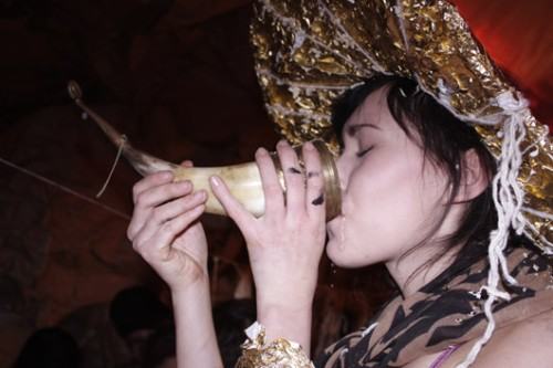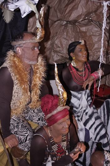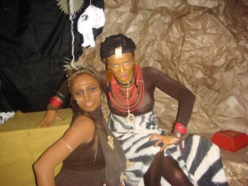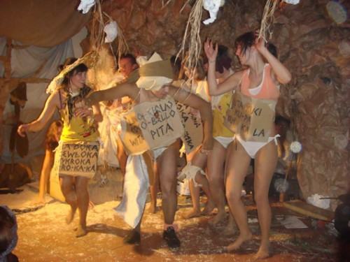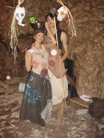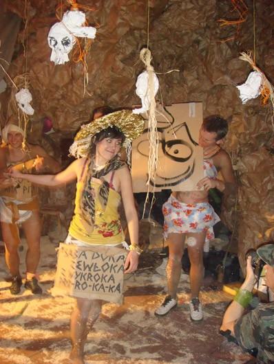 Najwymyślniejsze tortury zadawane nieszczęśnikom trwały do późnych godzin nocnych, zakończyły się rytualnym tańcem i przejściem białych golasów na ciemną stronę dzikiej mocy. Tak (mniej więcej) przebiegły, organizowane po raz dwunasty w Luboradowie otrzęsiny studentów I roku Pracowni Malarstwa i Rysunku nr 204. Zabawa była przednia; scenografia, kostiumy, scenariusz i reżyseria w wykonaniu II roku - oscarowe!... a kto nie był niech żałuje. Fot. Prof. Marek Jakubek i Prof. Stanisław Sasak