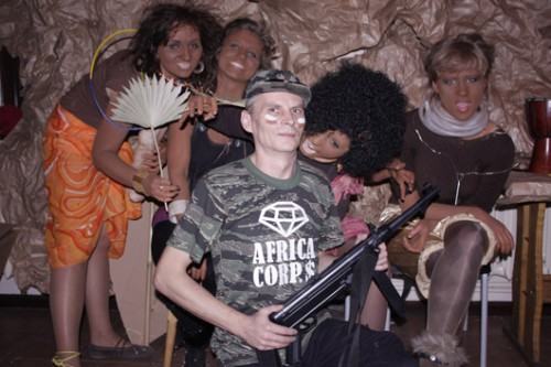 "..w okolicach Lu(mum)boradowa rozbił się samolot wiozący turystów na plaże Mombassy. Wszyscy przeżyli, lecz przerażeni wpadli w bezlitosne łapska krwiożerczych dzikusów....."