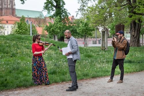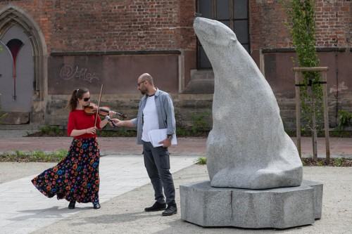 Podczas wernisażu rzeźby zostały ograne i ośpiewane.