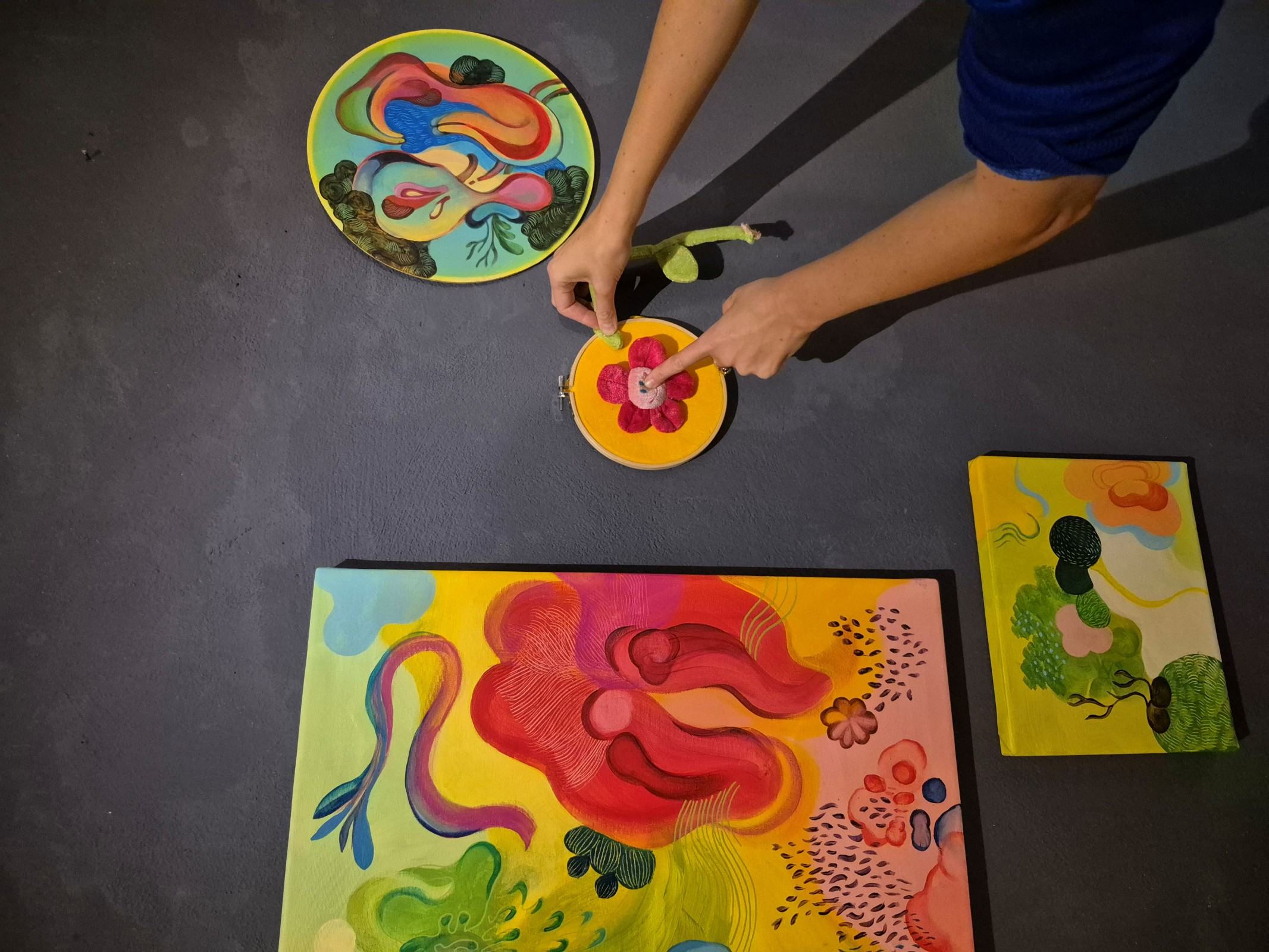 W słońcu to wystawa o zwróceniu ducha w stronę pełni. O otwarciu na to, co jasne, bogate, witalne. O odwadze, by przyjąć w sobie tę część, która nie waha się, nie cofa, nie przeprasza za swoje istnienie.