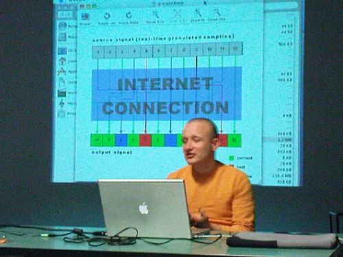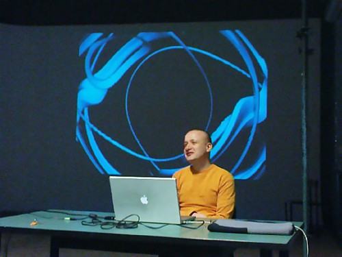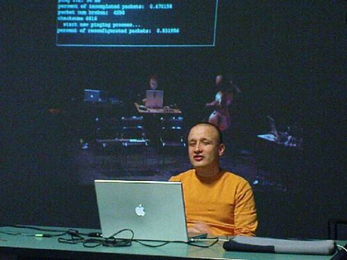 Twórca medialny - jednoosobowe laboratorium software'owe. Współcześni artyści medialni w coraz mniejszym stopniu pozostają klientami komercyjnego przemysłu komputerowego, a w kreacji własnych, lub sabotowaniu istniejących mediów znajdują jeśli nie cel strategiczny, to przynajmniej taktyczny. Jaka jest rzeczywista rola software'u w tworzeniu sztuki medialnej? Aktywności artystów pracujących z mediami elektronicznymi często znajdują formalną ekspresję w oprogramowaniu własnie - m.in. to odróżnia twórców medialnych od takich, którzy po prostu posługują się mediami (zastanymi). Różnica dotyczy więc statusu podmiotu twórczego: użytkownika lub kreatora. Innymi słowy: w sztuce medialnej software jest czyms więcej niż narzędziem. Umiejętność formułowania własnych koncepcji jako kodu jest więc nie tyle ciekawostką ile koniecznością. Paweł Janicki (1974) jest niezależnym twórcą i producentem medialnym pracującym z muzyką generatywną, estetyką microsound i kompozycją algorytmiczną, interaktywnymi systemami na potrzeby performance'ów i instalacji oraz własnym sprzętem i oprogramowaniem. Tworzył ścieżki dźwiękowe i interaktywne efekty do artystycznych CD-ROMów, radia i telewizji, realizował projekty bazujące na wielowymiarowej i fraktalnej geometrii aplikowanej na potrzeby dźwięku i animacji, uczestniczył w wielu projektach dokumentujących stan elektroakustycznej awangardy i współpracował z wieloma artystami, uczelniami, przemysłem IT i nagraniowym. Paweł jest związany z Centrum Sztuki WRO, a jego zainteresowania koncentrują się na bazującym na programowaniu przetwarzaniu dźwięku, aplikacjach sieciowych i rewitalizacji produktów istniejących infrastruktur: militarnej i rozrywkowej. Był także współzałożycielem i długoletnim członkiem popularnego kolektywu Gameboyzz Orchestra Project. Ponadto jest autorem Ping Melody - performance łączącego improwizację muzyczną z globalną wymianą informacji w przestrzeni Internetu. Za Ping Melody został w 2004 r. uhonorowany The netarts.org 2004 Grand Prize - nagrodą przyznawaną przez tokijski Haramachida University. Tekst: Paweł Janicki.