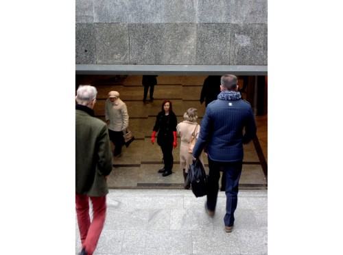 Na piętrze pokazujemy wideo z akcji Chcesz ze mną chodzić? Dominiki Borkowskiej. Performans polegał na wyciąganiu ręki do przechodniów w przyjaznym geście powitania. Film pokazuje, jak bardzo jesteśmy zamknięci na innych – wiele osób odwraca się i udaje, że nie dostrzega artystki. To nagranie ma być dla odbiorcy inspiracją do przełamania bariery arogancji oraz wyrwania się z izolacji, która staje się problemem społecznym. Przygotowany przez Dominikę Borkowską zestaw instrukcji motywuje do podjęcia inicjatywy i wejścia w kontakt z innymi ludźmi zwiedzającymi galerię. W performansie Chcesz ze mną chodzić? komunikacja odbywała się za pomocą gestów, na wystawie artystka nawiązuje jednak także do dwóch innych sposobów porozumiewania się – rozmowy oraz korespondencji pisemnej. Kolejne instrukcje pomagają w coraz głębszym otwarciu się na drugą osobę. Pierwszym etapem jest zaproszenie do dialogu przy użyciu pytań, opracowanych przez Dominikę Borkowską. Drugi etap to zachęta do wykonania gestów. Na zakończenie zwiedzający może napisać list, który stanie się częścią ekspozycji lub – wrzucony do specjalnej skrzynki pocztowej – trafi bezpośrednio do artystki.
