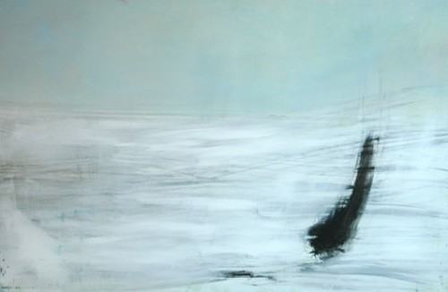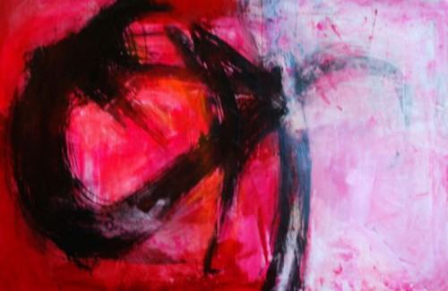 Malarstwo Agaty Kosmali, w każdym razie TO malarstwo, jest abstrakcyjne. Dlatego jedni będą je odbierać jako układ elementów mowy plastycznej, a inni będą się doszukiwać reminiscencji realnego świata, jako że układy barw same z siebie tworzą jakąś przestrzeń i światło, i nastrój. Zatem – to prawda – na niektórych obrazach można dopatrzeć się transpozycji krajobrazu czy erupcji żywiołów, ale sądzę, że kierunek interpretacji tego akurat cyklu wyznaczyła sama autorka i dotyczy on języka malarskiego. Zderzenia przestrzeni, płaszczyzny koloru z czarnym znakiem – śladem gestu. Bo znak jest czarny i wynika z tej drugiej fascynacji malarki, obecnej już we wcześniejszym cyklu obrazów zatytułowanym „Szelest”, a jest nią kaligrafia japońska. Piktogram kreślony jednym ruchem ręki, gestem wyprowadzonym z koncentracji. Kaligraf czyni to bezwiednie, po latach treningu. Tutaj jest to znak malarski, czarny, szeroki ślad, swobodny, miejscami rozlewny, wywiedziony z głębin intuicji. Wyeksponowany na plan pierwszy jest jak pieczęć zamykająca albo otwierająca obraz i - wraz z przypatrywaniem się mu - wszelkie dywagacje na temat interpretacji. Jest w nim napięcie i wyzwanie, wizualna efektowność. Czy coś znaczy? Co może znaczyć? Dla artystów abstrakcji lirycznej, których trudno tutaj nie przypomnieć, inspirujących się kaligrafią chińską i japońską, i – podążających tym tropem - filozofią tao i zen, medytacją i judo, ślad pędzla był śladem mowy ducha, a przestrzeń obrazu miejscem, gdzie podświadomość zyskiwała świadomość. Czym jest dla Agaty Kosmali? Myślę, że może poszukiwaniem, a może wahaniem – malować świat, który jest wokół czy świat, który jest wewnątrz? A może udałoby się to połączyć? Wszak słowo „piktogram” łączy w sobie przeciwstawności, bo oznacza znak, symbol rysunkowy, ale wywodzi się od „pingere”, co znaczy – malować. Zofia Gebhard