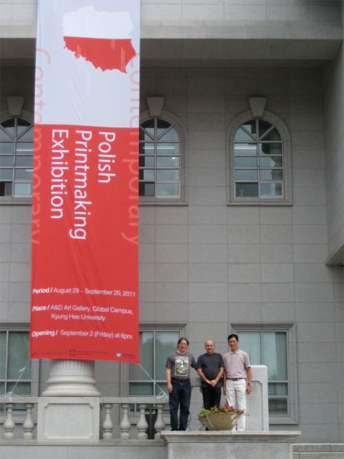 Otwarcie wystawy dziś czyli 2.09. o godz. 18.00 . Na wernisażu bedzie obecny rektor Uniwersytetu Kyung Hee w Seulu , dziekan Wydzialu Artystycznego oraz zapowiedzial swoje przybycie pan ambasador RP w Korei dr.Krzysztof Ignacy Majka . Na wystawę prace zostały wyselekcjonowane. Przyjelismy zasadę zaprezentowania dwóch prac kazdego artysty, poniewaz nie ma wystarczajaco duzo miesca na pokazanie większej ilości obiektów. Na fotografii głównej rektor naszej uczelni prof. Jacek Szewczyk po spotkaniu z panem ambasadorem RP w Seoul Club. Ekspozycję będzie mozna oglądać do 20.09. Kolejna fotorelacja wkrótce.