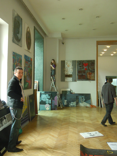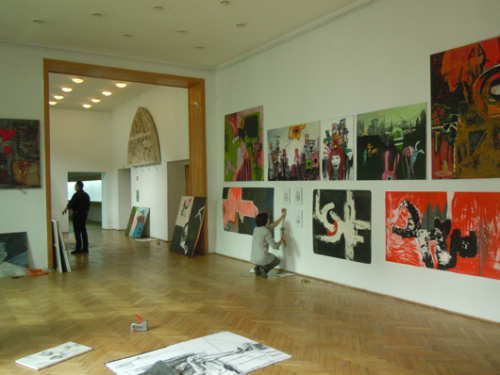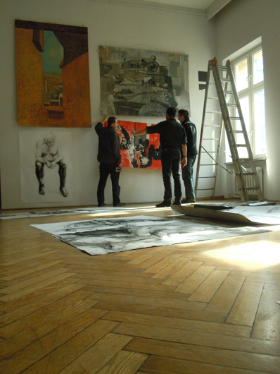 Przygotowania do wystawy malarstwa i rysunków studentów z pracowni 208 prof. Krzysztofa Skarbka , as. Pawła Liska i ad. Piotra Tyszkowskiego
