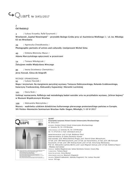 W najnowszym numerze czasopisma Quart m.in. : tekst Tomasza Mikołajczaka o projektach Władysława Wincze oraz Łukasza Huculaka o wystawie doktorantów ASP „Mapa i terytorium” w galerii Crous de Paris.
