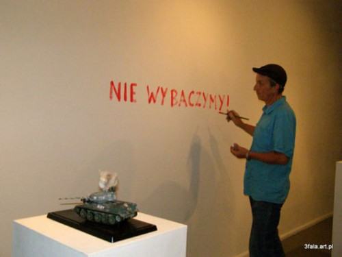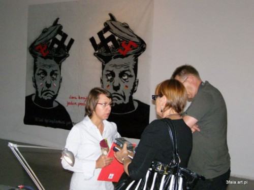 SYGNATURY WOJNY GCK Katowice, Sektor 1 Plac Sejmu Śląskiego 2 Katowice czas trwania: 01.09.2009 - 14.10.2009 Sygnatury wojny to wystawa upamiętniająca 70-tą rocznicę wybuchu II Wojny Światowej. Era wzajemnych rozliczeń między Polską, Rosją i Niemcami wydaje się nie być jeszcze zakończona. Powiernictwo Pruskie chce zaskarżyć byłą własność niemieckich przesiedleńców przed europejskimi i polskimi sądami. Jednocześnie polskie partie prawicowe stworzyły projekt ustawy żądającej reparacji wojennych od Niemiec. Pomimo że rząd Rosji uznał oficjalnie za winnych zbrodni katyńskiej ówczesną władzę sowiecką, pojawiają się nadal opinie negujące fakty historyczne. Okres powojenny w pewnym sensie trwa nadal. Tak też pozostanie, ponieważ to historia i wspomnienia kształtują ludzką pamięć. Artyści zaproszeni do udziału w wystawie transponują wydarzenia z września 1939 na język sztuki współczesnej za pomocą różnorodnych strategii i technik artystycznych. Część prac jest osobistym komentarzem i studium badań artystów nad historią – żywą reakcją na sytuacje konfliktowe, powstałe w następstwie wojny. Na wystawie będzie można obejrzeć pracę na banerze Dwa kraje – jeden problem (70 lat sprzątania po naziolach) i graffiti wg szablonu (wraz z instalacją) Zamiast głowy 3Fali, czyli Dariusza Paczkowskiego, swastyki Leszka Knaflewskiego, obiekty Tomasza Bajera krytykujące IG Farben – producenta Cyklonu B, Kącik medyczny Roberta Kuśmirowskiego oraz filmy Anny Orlikowskiej podejmujące temat rozkładu i śmierci. Rainer Ganahl zajmie się paktem Ribbentropp-Mołotow, znanym na Zachodzie pod nazwą Hitler-Stalin Pakt, Jerzy Kosałka odniesie się do problemu narodowej nienawiści i ulubionych kadrów z serialu Czterej pancerni i pies w pracy Nie zapomnimy! Bogdan Wenda ujawni swój PESEL nawiązujący do tatuażów więźniów z Auschwitz, Janek Simon uruchomi dźwiękową instalację w jednym z katowickich kanałów, w którym usłyszeć będzie można głos dyktatora. artyści/ artists: Tomasz Bajer 3Fala (Dariusz Paczkowski) Rainer Ganahl (AU/USA) Jerzy Kosałka Leszek Knaflewski Robert Kuśmirowski Anna Orlikowska Janek Simon Bogdan Wende Agnieszka Kłos wykład i pokaz zdjęć archiwalnych i autorskich Tekst: Jola Bielańska Organizatorzy : Fundacja Sektor, Galeria Sektor I Kuratorzy : Jola Bielańska, Monika Lewandowska Koordynator : Leszek Lewandowski
