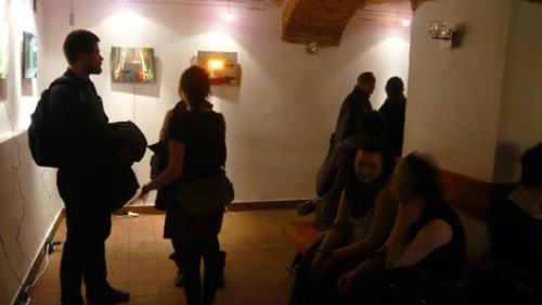 "Obrazy Złoty legins, czarny okular to moje osobiste świetlne notatki z podróży o dwóch twarzach: nocnej, kiedy światła wyznaczają granicę między widzialnym, a niewidzialnym oraz porannej, kiedy ja widzę to, co wcześniej nie było widzialne. Tokyo lights to próba podjęcia tematu zmienności, ulotności chwili, chęci zapamiętania tego, co dziś jeszcze rozświetlone, jutro może nieodwracalnie wygasnąć. To miejska karuzela disco, gdzie światła-znaki wyznaczają kierunek obrotu, którego tropem mimowolnie podążamy." Wystawę można oglądać w Galerii Szewska 36, w piwnicach Instytutu Historii Sztuki UWr. Ewelina Sośniak