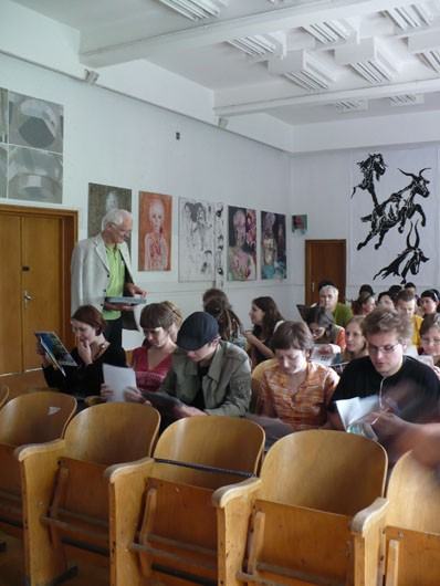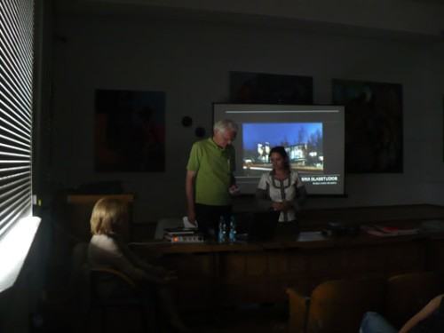 W czwartek 28 maja odbyło się spotkanie z Panem Wilhelmem Derixem-właścicielem firmy witrażowej DERIX GLASSTUDIO.Zapoznał Nas z wieloma projektami które realizował na świecie, na zamówienie wielu wybitnych artystów ( Karla-Martina Hartmanna,Angeliki Turban,Lutza Haufschilda,Gerharda Richtera). Przekonywał Nas ,że nie ma rzeczy niemożliwych do wykonania ze szkła....Okazał się przy tym byc niezwykle dowcipnym prelegentem i prawie nas do tego przekonał.... Zawsze pozostaje jednak kwestia ,jak pozyskac sponsora ? Podczas kiedy koszt jego realizacji zamyka się w setkach tysiecy euro. Pan Derix zaprasza wszystkich serdecznie do odwiedzenia siedziby swojej firmy w Niemczech,a tych którym nie uda się tam pojechac zapraszam na stronkę: www.derix.com Szczególnie polecem obejrzenie niewiarygodnej konstrukcji w Train Station R4 Airport, Kaohsiung, na Taiwanie Agnieszka Leśniak