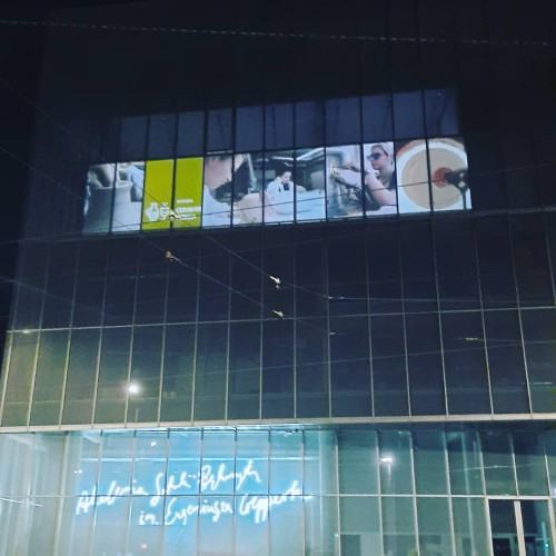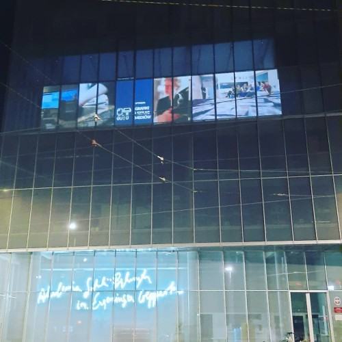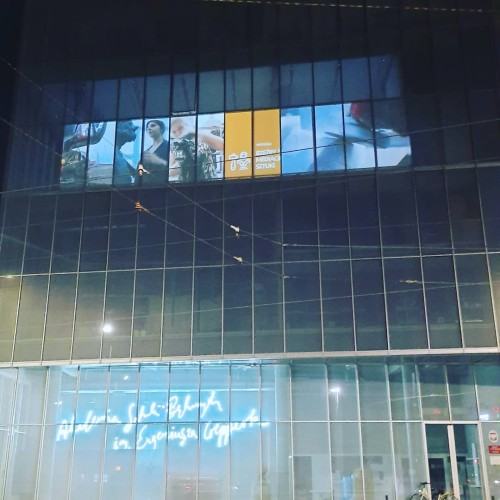 Koniecznie będąc wieczorową porą w okolicach Centrum Sztuk Użytkowych. Centrum Innowacyjności unieście głowy do góry, by móc podziwiać ożywioną fasadę budynku.