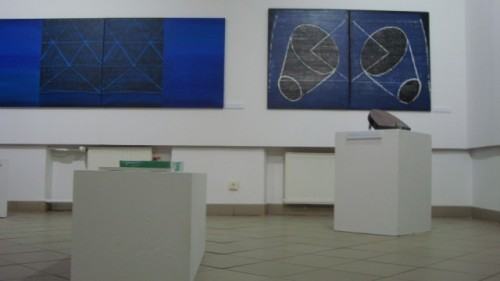 To wspólna wystawa Prof. Małgorzaty Dajewskiej (szkło) i Prof. Piotra Błażejewskiego (malarstwo).