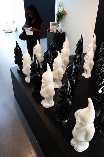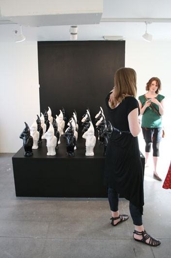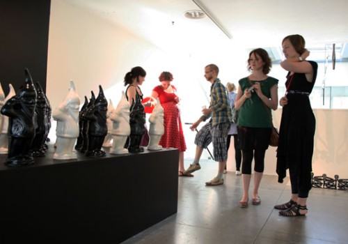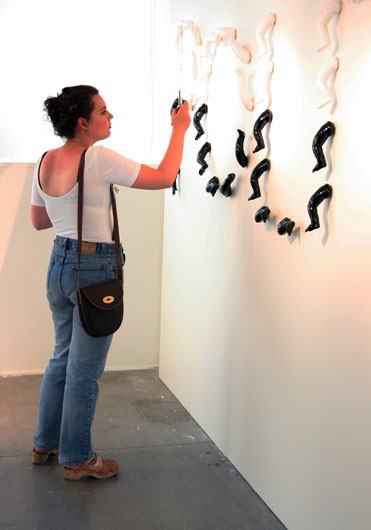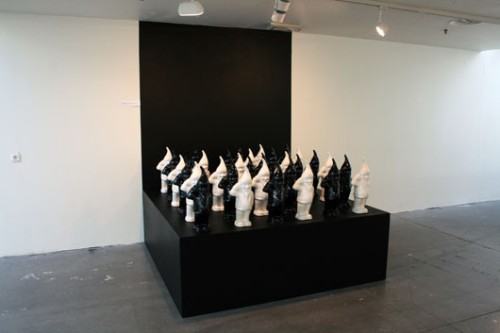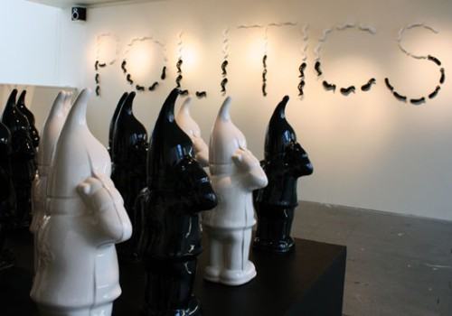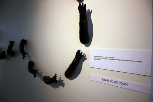 "Sztuka jest ekshibicjonizmem, ekshibicjonizm jest sztuką. Barwa jest jednym z wiodących aspektów w mojej twórczości, używam bieli i czerni,wyodrębniam rasę obiektu. Separuję i łączę w jedno. Zdecydowałam się na realizację trzech projektów jednocześnie które są od siebie różne w wymowie. Pierwszy z nich to „początek", aspekt gender zawsze był mi bliski, ciekawy do poznania i określenia swojej seksualności. Bycie kobietą jest niesamowitą inspiracja do eksponowania siebie w twórczosci poprzez seksualność, bycie obiektem, funkcjonowaniem w społeczeństwie, bycie ciałem, bycie narządem rozrodczym i „trofeum mężczyzny”. (...)Jest to manifest kobiecości, siły, mocy i potęgi twórczości, oraz swoista paralela do osobisej przemiany poznania i odkrycia swego ciała oraz seksualności. "Praca poświęcona pamięci mojej przyjaciółki Anny Kluzek która zmarła 6 lat temu, 1 Czewrca 2003 roku. Mogła być w miejscu w którym ja teraz jestem..." Kolejna praca to „Symbol” „Symbols are only empty bottles. They function only through what you put in them —personal symbols mean personal alphabet, our uniqueness is all we have.” Louise Bourgeois ("Symbole to tylko puste butelki. Funkcjonują tylko wtedy gdy coś w nich umieścisz-osobiste symbole oznaczają osobisty alfabet, nasza wyjątkowość jest wszystkim co mamy")Używam kiczu konsumpcyjnego do mówienia o symbolu i postrzegania go. Do mówienia o stereotypie i to jak jest on budowany w naszych głowach. Symbol kiczowatego krasnala jest szczególnie specyficzny dla Szwecji i krajów germańskich, rozpoznawany i kojarzony na pierwszy rzut oka. Wszyscy go znają i wiedzą do czego „służy”.Jest to rodzaj manifestu, który eksponuje jak łatwo jest oceniać bez myślenia i jak zostaliśmy ograniczeni przez sukcesywne wpajanie symbolii stereotypów. Praca odwołuje się do podziału rasowego. Ostatnia część wystawy zatytułowana:„Politics” „Politics is a terror of minds, consume”. (Polityka jest terrorem umysłu, konsumuj.) Plastikowe ręce i nogi. Wizualizacja obecnego stanu świadomości społeczeństwa. Każdego społeczeństwa. „Realia dziejów ludzkości i współczesności dowodzą, że polityki korzystnej dla wszystkich po równo zazwyczaj nie ma.... Polityka u Arystotelesa jest rozumiana jako rodzaj sztuki rządzenia państwem, której celem jest dobro wspólne.” Czy ona w rzeczywistości służy dobru wspólnemu? I czy nadal jest sztuką czy tez praniem mózgu które w rzeczywistości wykorzystuje tych najsłabszych. Czy zgadzamy się na to co „mędrcy” ustanowili a my jako „głupcy” konsumujemy? M.J
