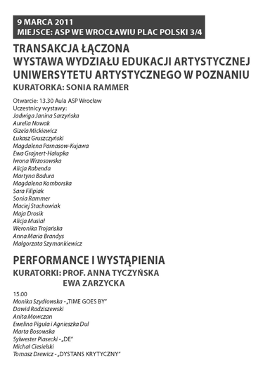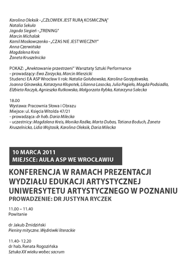 Wystawa Wydziału Edukacji Artystycznej z Poznania , otwarcie 09.03 godz 13.00 aula Pl.Polski 3/4