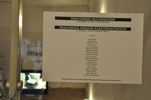 prezentowane są semestralne realizacje z Pracowni Multimediów prowadzonej przez prof. Pawła Jarodzkiego, oraz Pracowni Mediów Elektronicznych prowadzonej przez adiunkta Wojciecha Pukocza.