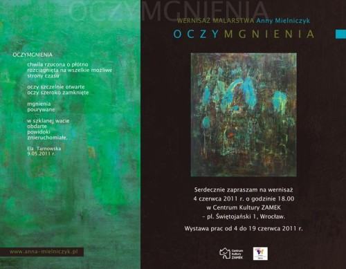 Ścieżka nawigacyjna ASP Aktualności Wernisaż malarstwa Anny Mielniczyk "OCZYMGNIENIA" Ogłoszenie Opublikowano 29 Maj 2011 4. czerwca 2011, o godzinie 18.00 w Centrum Kultury ZAMEK, pl. Świętojański 1, WrocławWystawa prac od 4 do 19 czerwca 2011 www.anna-mielniczyk.pl A.R Pozostałe aktualności Fotorelacja Connect – Campus Summer School – szkoła wymiany W dniach 23-29 października, w Sokołowsku, odbył się artystyczny kurs zawodowy zorganizowany przez Fundację Sztuki Współczesnej In Situ. 31 paź 2025 Czytaj więcej o Connect – Campus Summer School – szkoła wymiany Fotorelacja Otwarcie wystawy Słowa, które nie padły Zapraszamy na fotorelacje z wystawy Soni Ruciak, którą oglądać można do 5 grudnia w Galerii Rektorat im. Zenona Polusa. 31 paź 2025 Czytaj więcej o Otwarcie wystawy Słowa, które nie padły Fotorelacja Industrial glass Zapraszamy do obejrzenia fotorelacji z wystawy. 31 paź 2025 Czytaj więcej o Industrial glass Fotorelacja ArtTechScience - Interdyscyplinarne Forum Uczelni Wrocławia 28 października 2025 roku we Wrocławiu odbyła się pierwsza edycja konferencji. 31 paź 2025 Czytaj więcej o ArtTechScience - Interdyscyplinarne Forum Uczelni Wrocławia