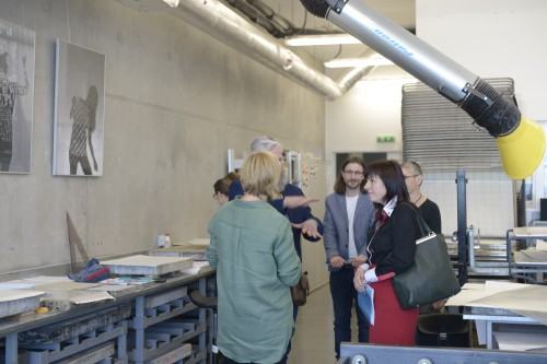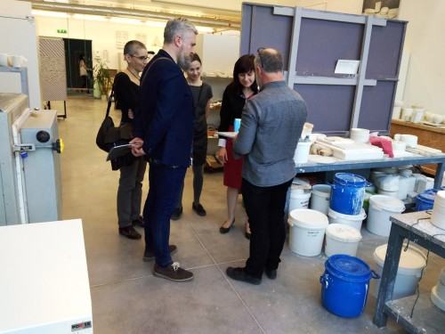 Po spotkaniu w kuchni CSUiCI goście udali się na zwiedzanie wybranych pracowni. Laboratorium Technologii 3D i Technik Animacyjnych (Wydział Grafiki i Sztuki Mediów), Pracownia Projektowania Środków Transportu (Wydział Architektury Wnętrz i Wzornictwa), Pracownia Medalierstwa i Małych Form Rzeźbiarskich (Wydział Malarstwa i Rzeźby) czy Pracownia Technik i Technologii Malarstwa (Wydział Malarstwa i Rzeźby) – by wymienić tylko kilka odwiedzonych miejsc – zrobiły na gościach, którzy byli u nas po raz pierwszy, kolosalne wrażenie. Wizytę zwieńczono specjalnym pokazem w hucie szkła (Wydział Ceramiki i Szkła).