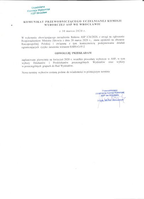 Komunikat Przewodniczącego Uczelnianej Komisji Wyborczej