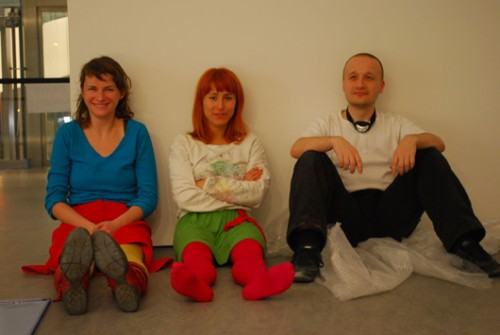 A od lewej siedzą : Patrycja Mastej, Dominika Sobolewska i Paweł Janicki ...autorzy " Interaktywnego Placu Zabaw " Piotr Osowicz
