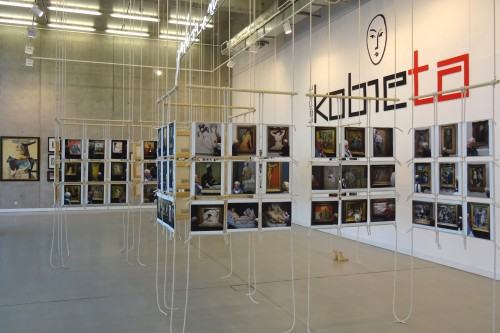 Organizując przestrzeń wykorzystałam te zasady aranżacyjne, które pozwalają konfigurować elementy etalażu w kompozycyjne całości. Nie traktowałam poszczególnych kadrów w kategoriach obrazów, lecz jako raport, który posłużył do opisania i wypełnienia przestrzeni. Pomocne w budowaniu wzajemnych relacji, było poddanie się dyktatowi kwadratu, co pozwoliło mi na wyodrębnienie swoistej struktury powiązań mentalnych i formalnych. Zadaniem wystaw jest opowiadanie historii. Idei i architekturze wystawy „Temat kobieta", nadałam subiektywne znaczenia.