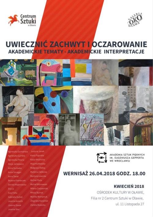 - W dniu 26 kwietnia br. o godzinie 18.00 w Centrum Sztuki w Oławie ( ul. 11 listopada nr 25) odbył się wernisaż prac Słuchaczy Studium Podyplomowego Dyscypliny Plastyczne w Architekturze
