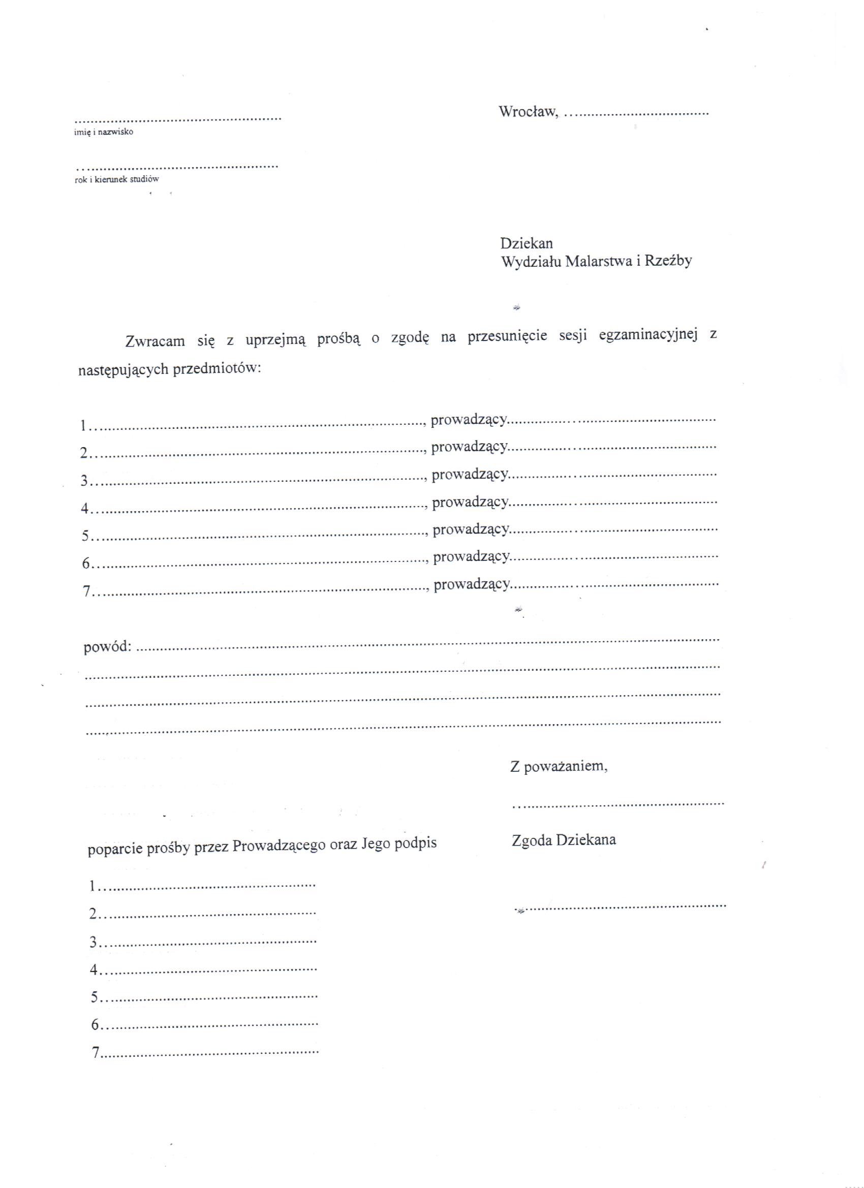 Podanie o przesunięcie sesji- wzór