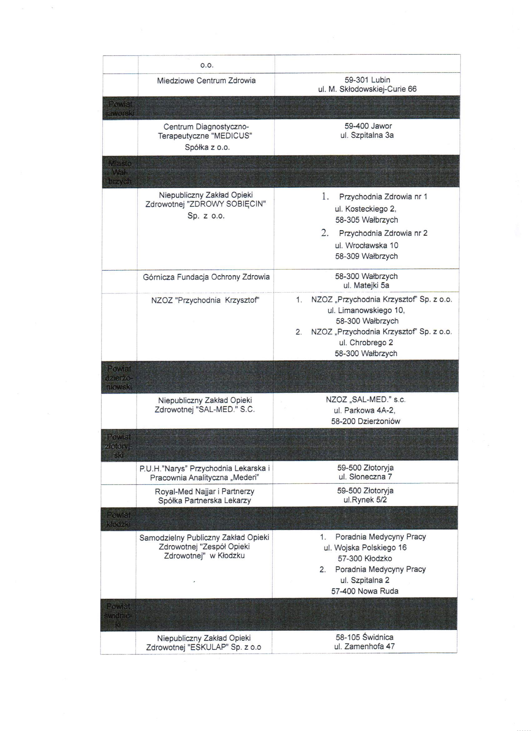 Placówki wykonujące badania Medycyny Pracy str.2
