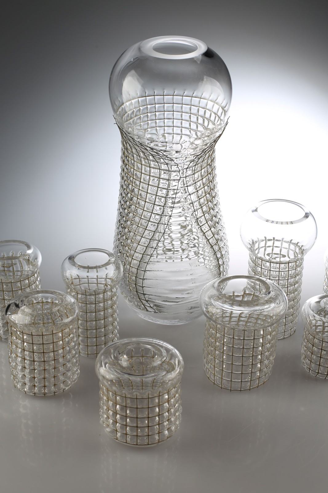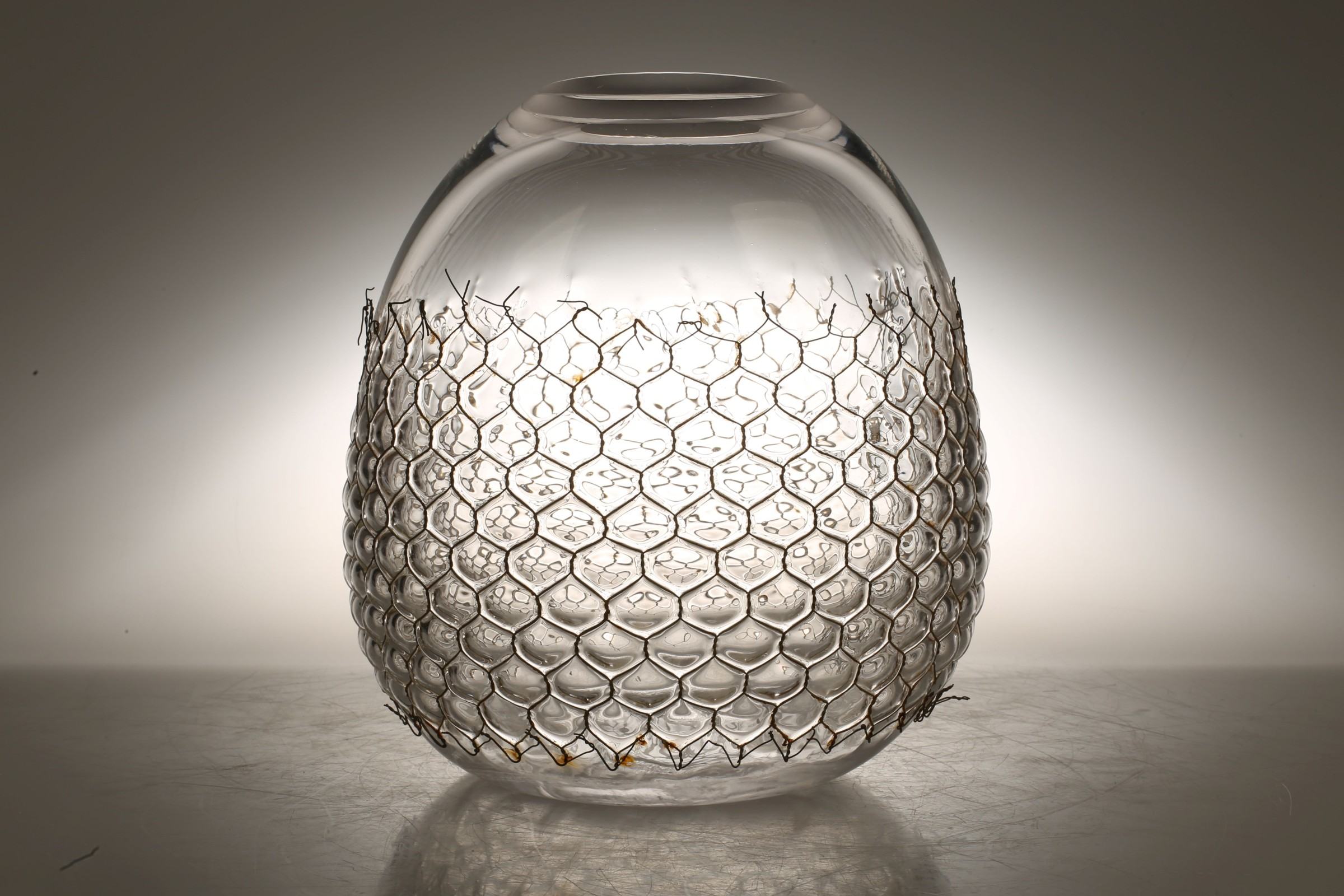 Beata Mak-Sobota eksperymentuje w procesami technologicznym związanym z techniką dmuchania szkła, wykorzystując metalowe siatki do kreowania formy naczynia. Łączy tradycyjne metody rzemieślnicze z materiałami, które przynależne są odległemu obszarowi budownictwa. W jej seriach naczyń Koszyńce i Siatkańce minimalizm przejawia się w ograniczeniu środków wyrazu, rezygnacji z dekoracyjności na rzecz klarowności relacji forma, tworzywo, technologia. Prace prezentowane w ramach wystawy „Industrial glass” w Black Frame przy Concordia Design zostały zrealizowane jako projekt badawczy w Hucie szkła im. prof. Zbigniewa Horbowego Katedry Szkła Wydziału Ceramiki i Szkła Akademii Sztuk Pięknych im. Eugeniusza Gepperta we Wrocławiu.