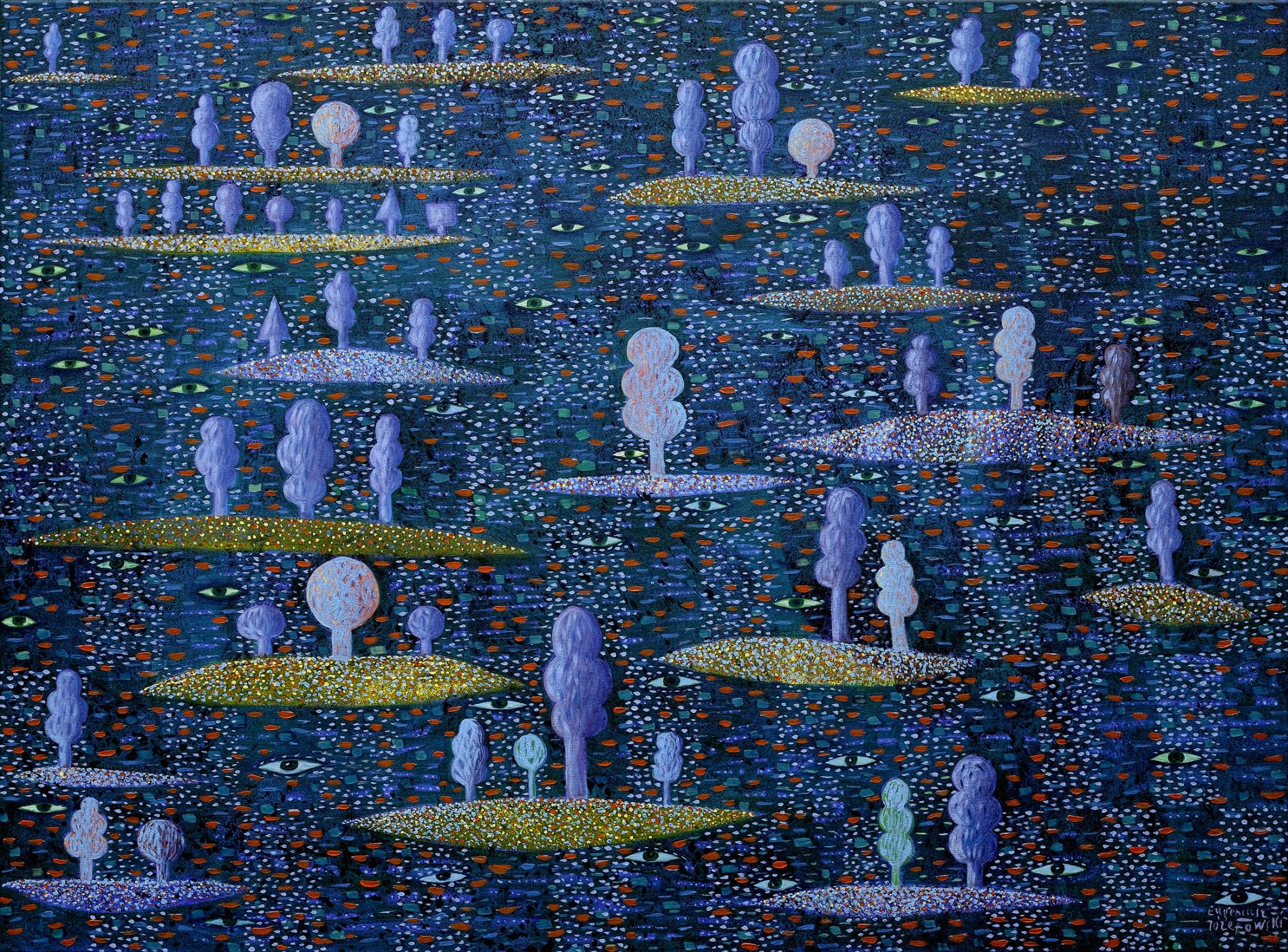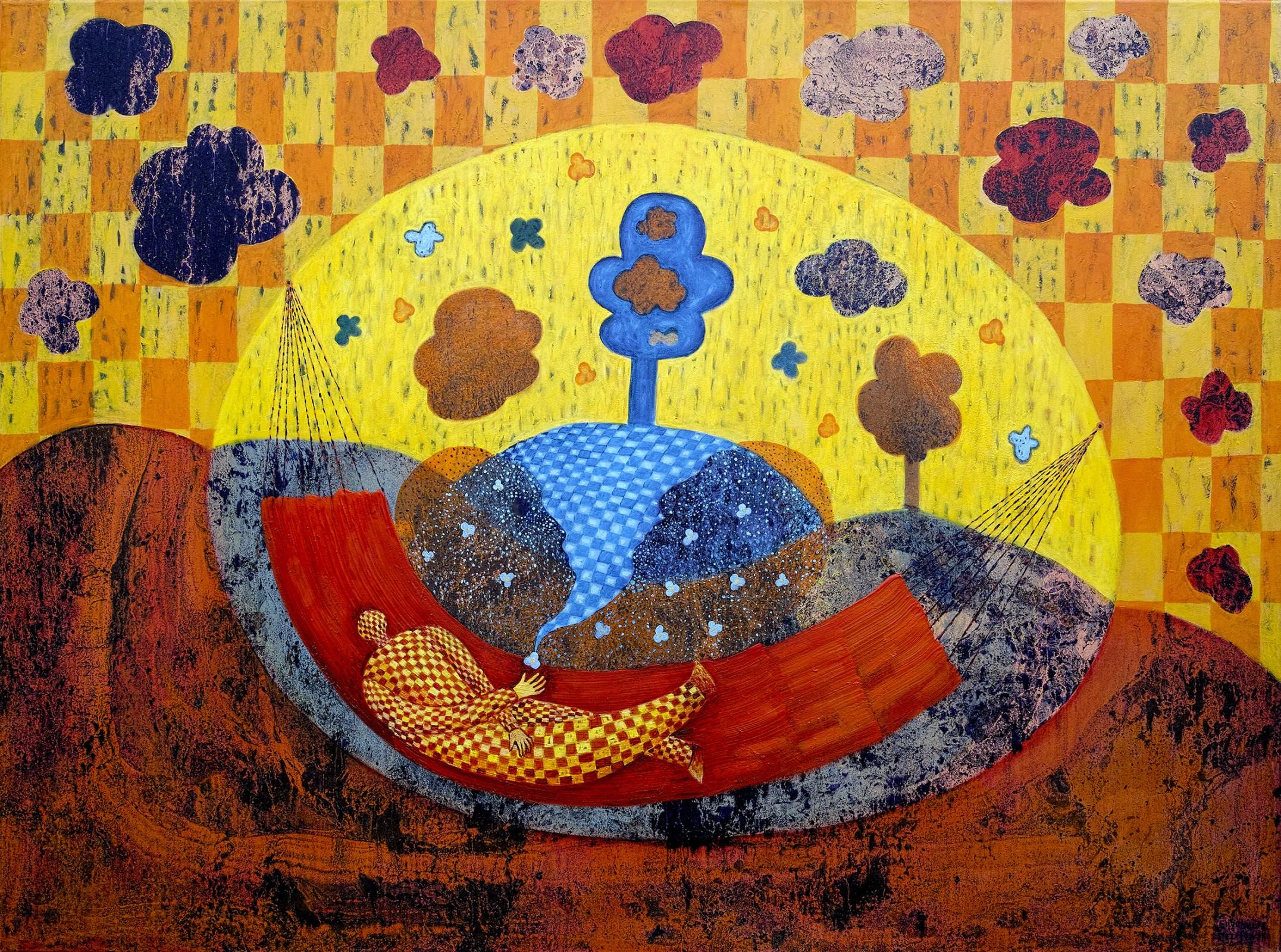 Od 1981 roku uprawiając twórczość wizualną staram się zarejestrować specyfikę mojego sposobu przeżywania rzeczywistości. Pracując często jako edukator sztuki wielokrotnie aranżowałem warsztaty twórcze przy kreacji plastycznej dla ludzi w różnym wieku. Najczęściej proponowałem im aktywność, na którą sam miałbym ochotę. Kiedy skończyłem sześćdziesiąt lat postanowiłem aranżować takie przeżycia tylko z samym sobą. Aktualna dekada mojej aktywności twórczej obfituje w takie przedsięwzięcia. Tytuł wystawy zaczerpnięty jest z ostatniego działania rozpoczętego w lipcu 2024 roku. Zamówiłem 35 podobrazi malarskich w formacie 150 cm na 110 cm i grubości 2 cm. Następnie nabyłem dmuchany basen takiego formatu, bym mógł swobodnie zanurzać podobrazia. Do realizacji tego cyklu prac malarskich użyłem w fazie wstępnej technikę marmoryzacji. Oglądając powstałe efekty napisałem dla siebie treningi wyobrażeniowe służące do spacerów w głąb siebie. Przed rozpoczęciem pracy nad obrazem wychodziłem na taki spacer w wyobraźni celem inspiracji. Dopiero wtedy rozpoczynałem tradycyjne malowanie. Trwało to rok i trzy miesiące. Na wystawie pokażę także prace z innych cykli, odpowiadające tematyce tytułowej deklaracji.