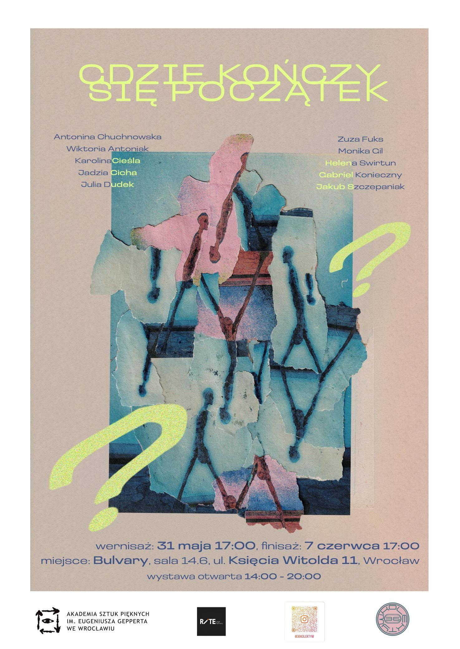 Gdzie kończy się początek? to efekt współpracy osób studenckich z III roku historii sztuki z osobami artystycznymi pracowni malarstwa prof. Łukasza Huculaka. Podejmuje refleksję nad ideą transcendencji rozumianej jako przekraczanie ustalonych granic istnienia i poznania. Wystawa to przestrzeń, w której początek i koniec tracą swoją oczywistość.